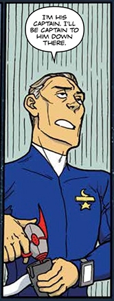 In T-Minus, Commander Gene Peeples is the Captain of the starship Orsino. Peeples takes the Orsino to Mars to help Sparks Nevada with the War of the World between the Science Beings and Technology Beings. However, an energy burst and the radiation around Mars at the time caused major problems with the Orsino, and Peeples was forced to order his crew to abandon ship. He also sent the robot Techs, who was also glitching from the radiation, to help Sparks Nevada. He, Linda, and Erica all escaped safely.